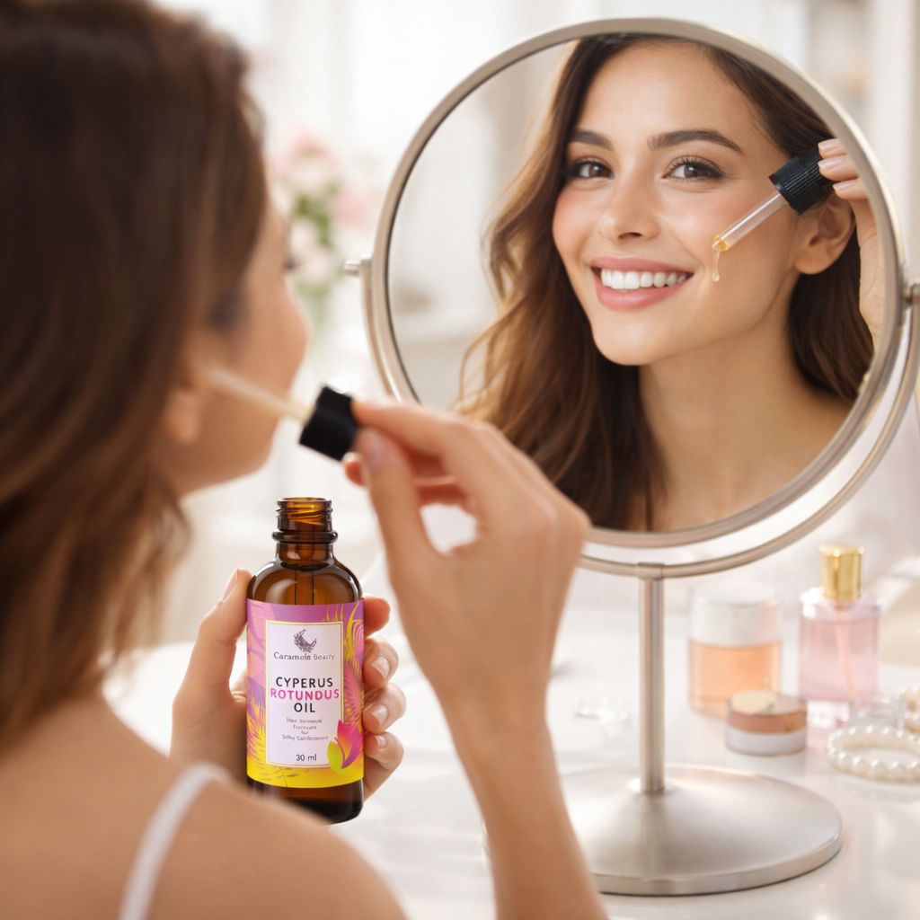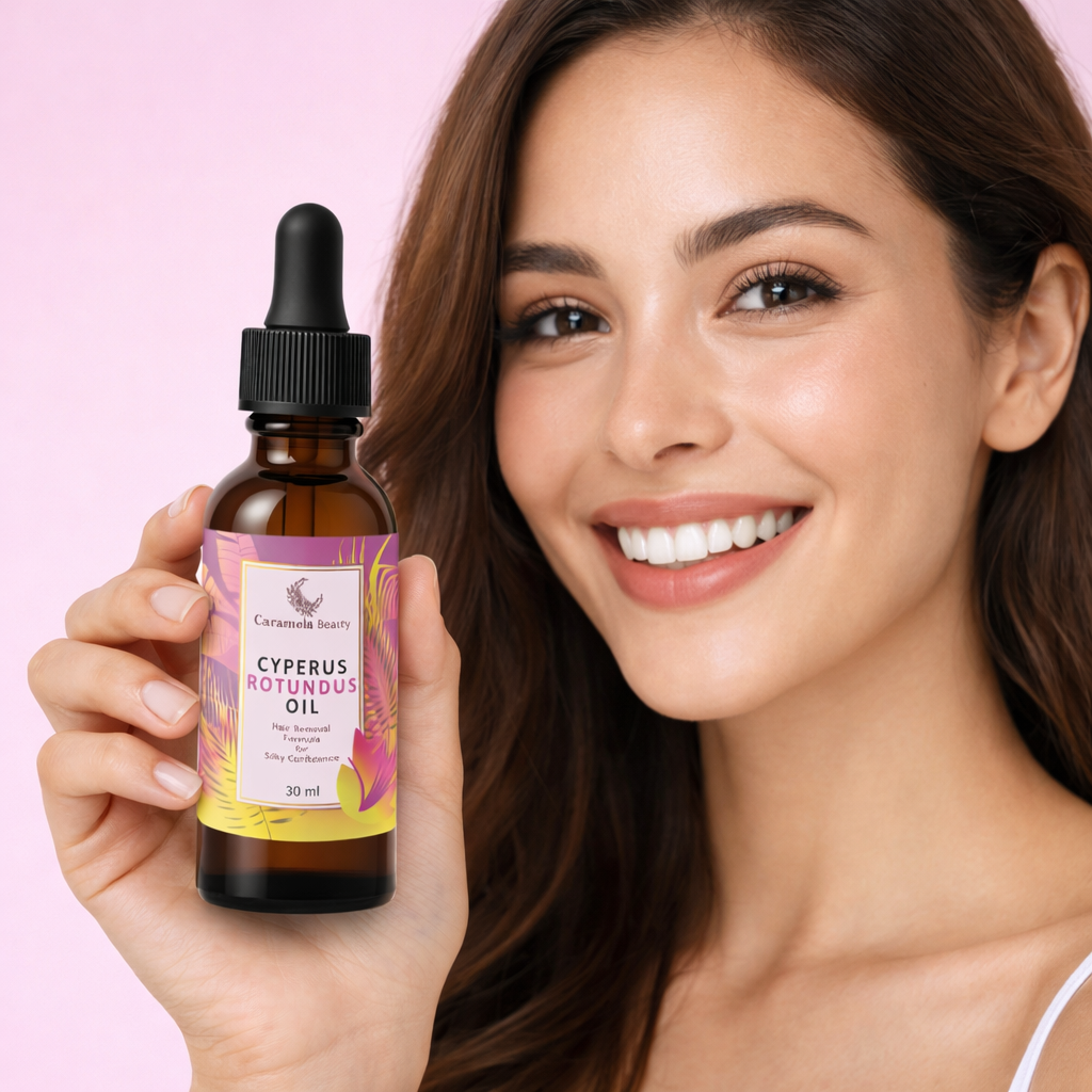 Caramela Beauty Cyperus Rotundus Oil ayuda a reducir progresivamente el crecimiento del vello mientras cuida tu piel desde la raíz, logrando una apariencia más lisa y uniforme con el uso constante.